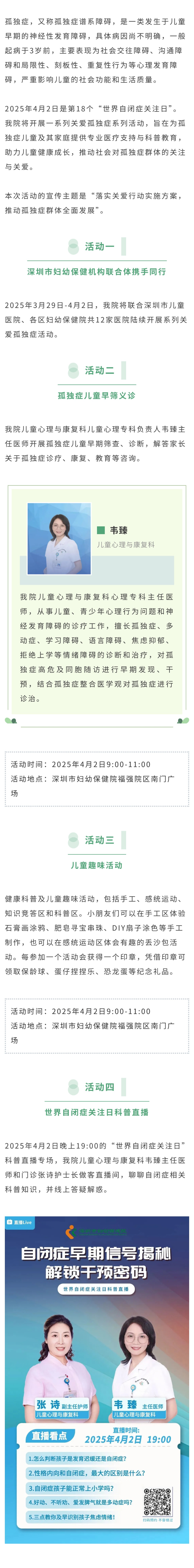 世界自闭症关注日|我院将开展关爱孤独症系列活动